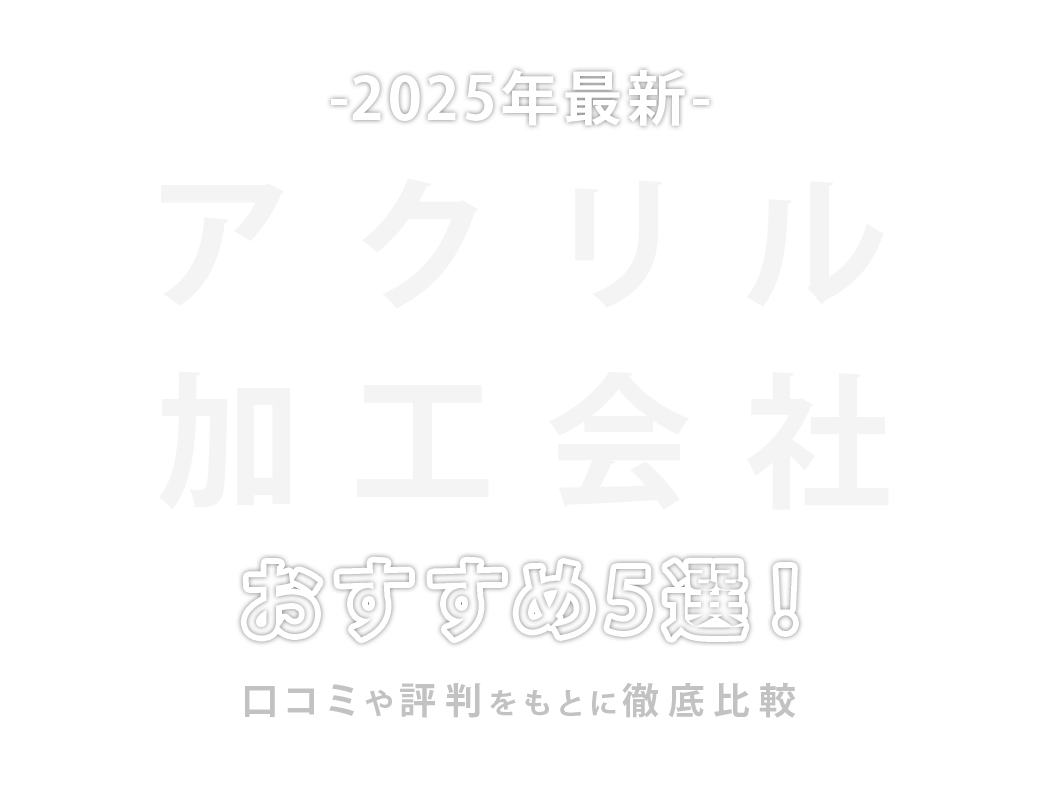 そこで当サイトでは、対応力や製品の品質など、こだわりで選ぶおすすめのアクリル加工会社や、アクリル加工を依頼するうえで知っておきたい情報のほか、WEBアンケートを実施して実際にアクリル加工を依頼した方の口コミや評判についてもまとめてご紹介していますので、ぜひ参考にしてください。思い描いた理想の製品を実現しましょう。